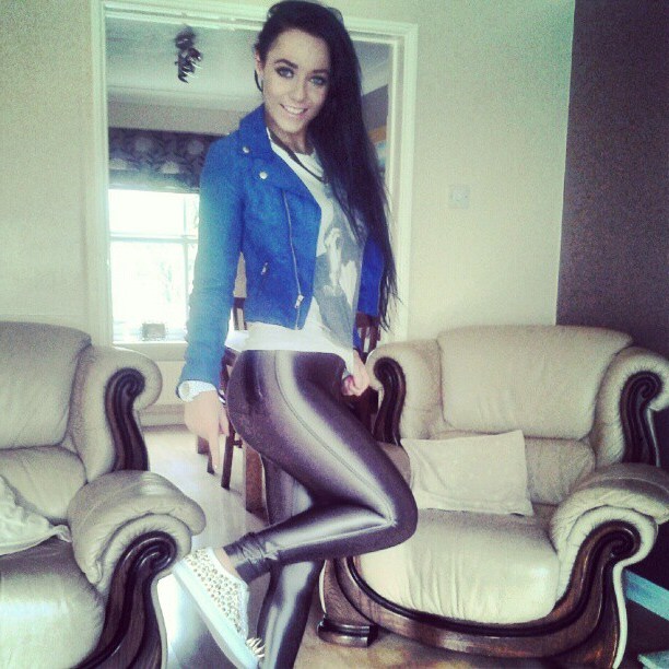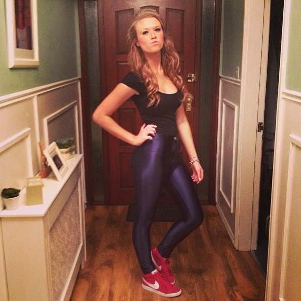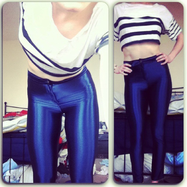 Now take a look at some pics of ladies wearing these unique, shiny spandex pants.