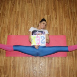 - Sexy russian girl wearing shiny blue spandex pants